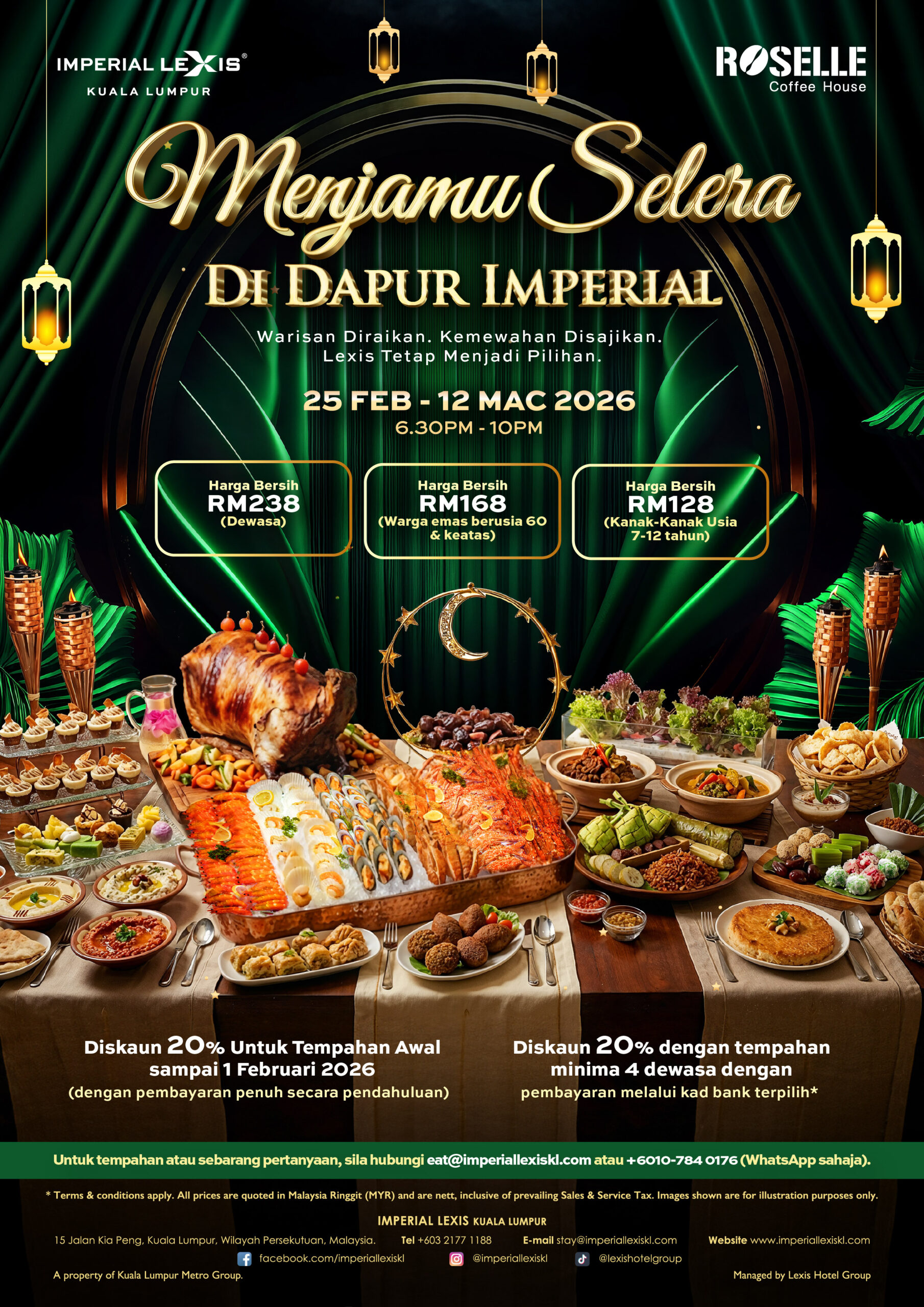 For bookings, guests may contact the hotel via email at eat@imperiallexiskl.com or through WhatsApp at +6010 784 0176.