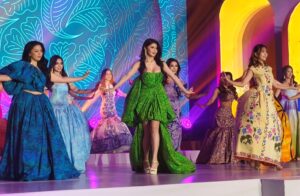 All of the finalists showcasing their dresses made with pattern representing culture and beauty
